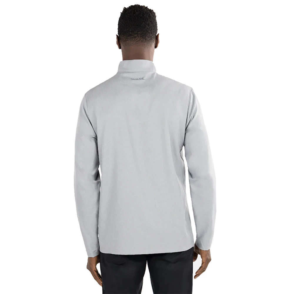 Perfect for rounds in the fifties and sixties comes the TravisMathew Taking On Water Golf 1/4 Zip. The Taking On Water QZ is built with a polyester/spandex blend with an enhanced four way stretch that will provide golfers with extreme comfort throughout the golf swing and the 1/4 zip closure allows you to control the coverage. The heathered fabric with twill textured chest stripe, TM logo on the left chest and printed wordmark on the back yoke will have you looking good on and off the golf course.