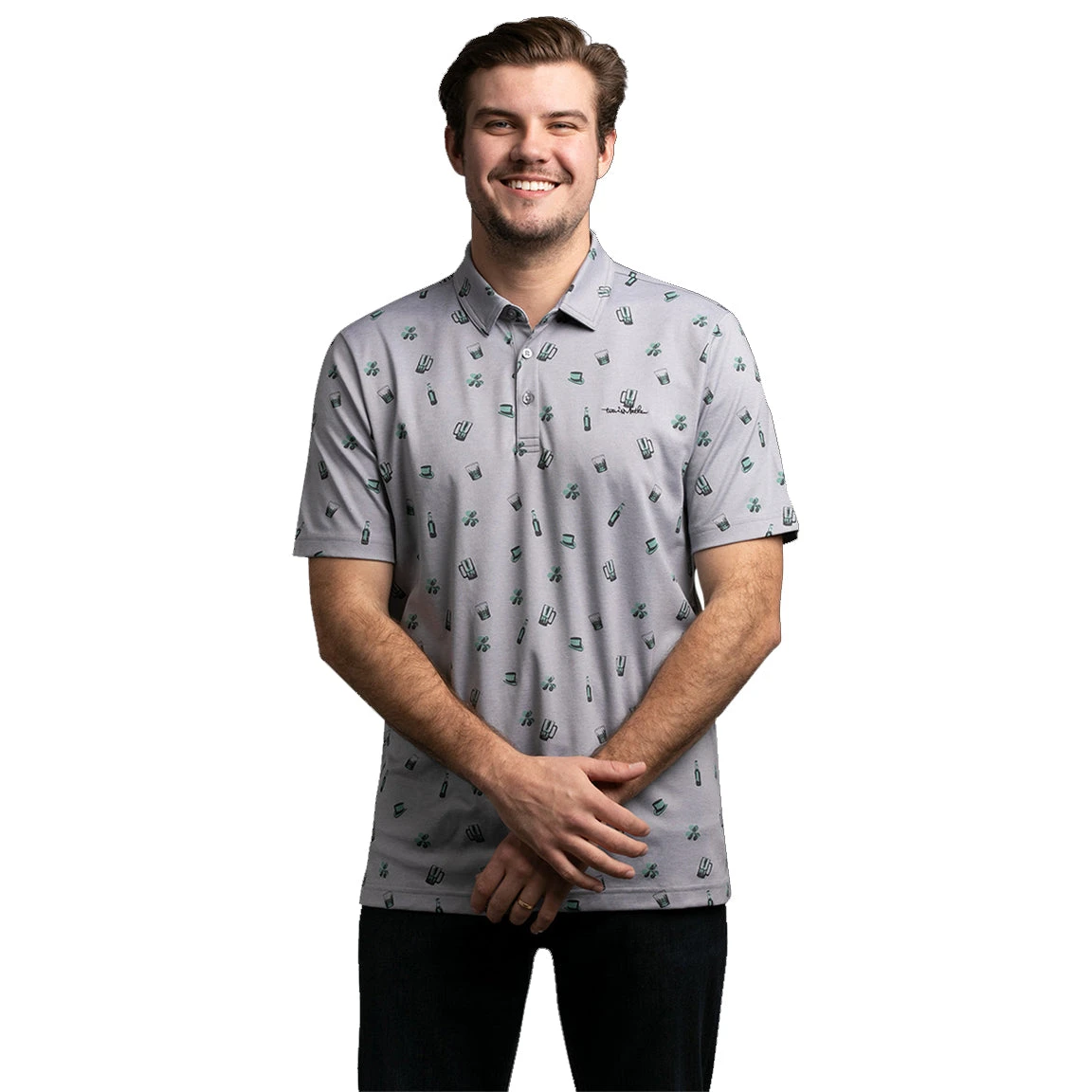 Give your wardrobe and upgrade in style with the Travis Mathew Treasure Hunt Polo. This polo brings the style with its all-over pattern featuring green beer, top hats and shamrocks. This polo Is built with Prestige Lifestyle Performance fabrics and an enhanced stretch and wrinkle resistant to have you feeling comfortable and looking clean. The Treasure Hunt polo is also quick drying and moisture dispersing to keep you dry and comfortable.